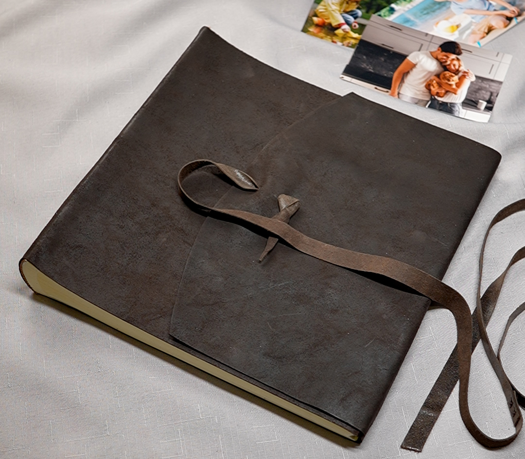 Премиальный традиционный фотоальбом ручной работы с обложкой, выполненной из одного целого куска натуральной кожи. Позволяет размещать фотографии любого формата и свободно располагать их на листе, дополняя своими подписями и рисунками по вкусу. Внутри фотоальбома, как и у всех фотоальбомов Tezoro – классический блок. Между страницами проложены вкладки из пергамина (кальки), которые не дают фотографиям соприкасаться друг с другом и слипаться. Фотоальбом формата 30см на 30см. Сделано в Италии.
