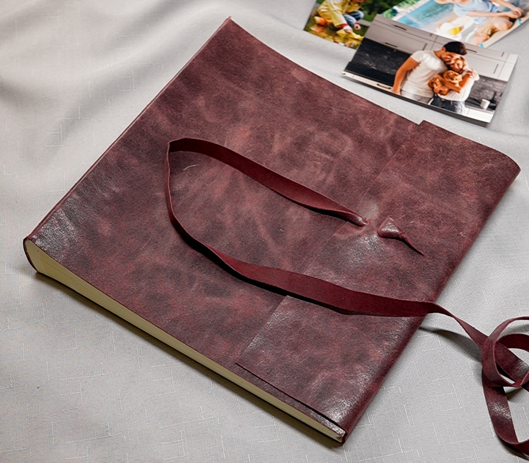 Премиальный традиционный фотоальбом ручной работы с обложкой из натуральной кожи в фиолетовом цвете. Фотоальбом формата 30см на 30см. Внутри фотоальбома - классический блок. Картонные листы проложенные пергаментом (калькой), которые не дают фотографиям соприкасаться друг с другом и слипаться. Фотография размещаются либо на уголки либо на двухсторонний скотч. Сделано в Италии.