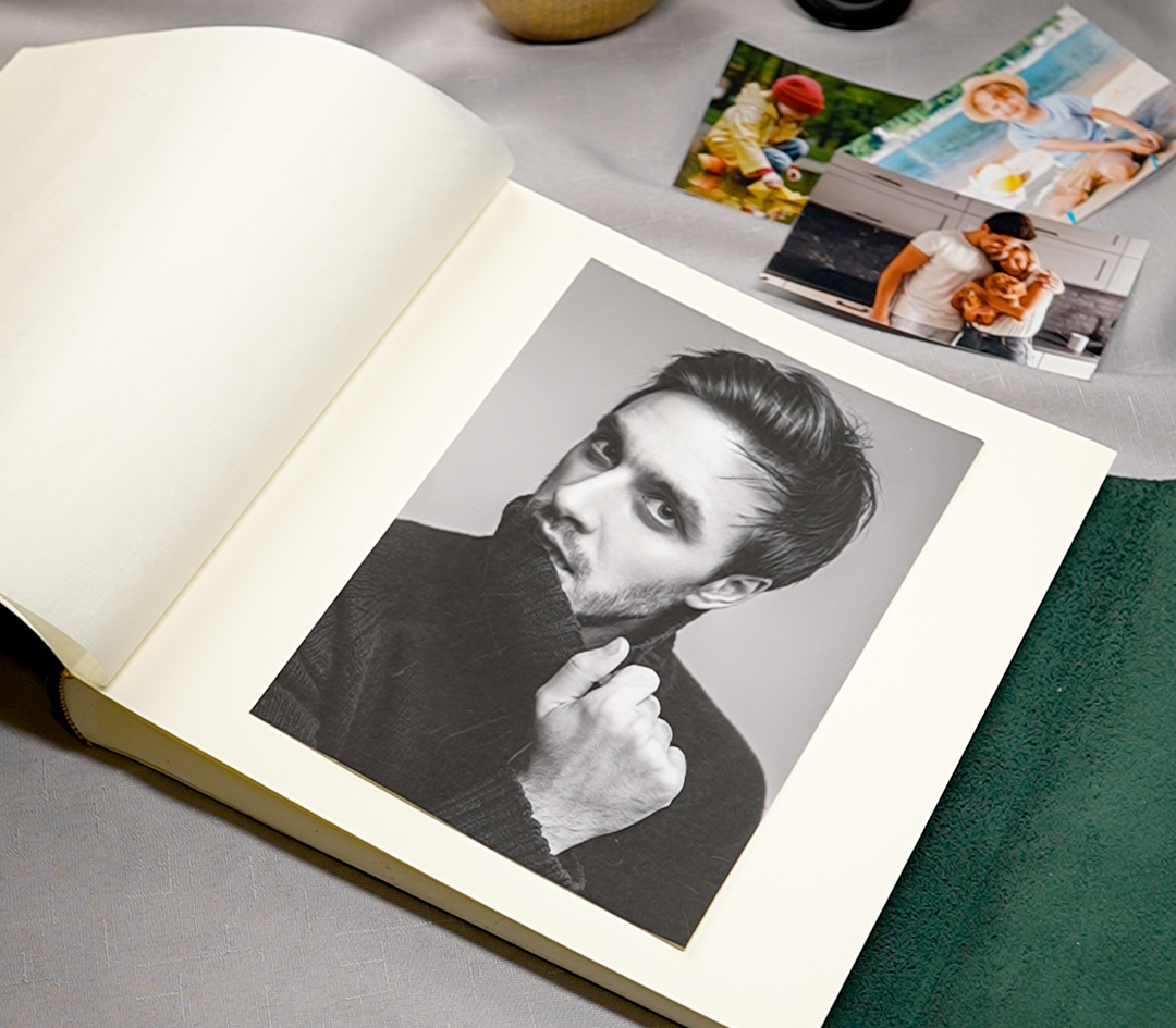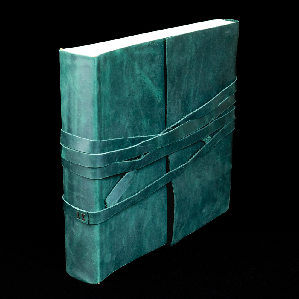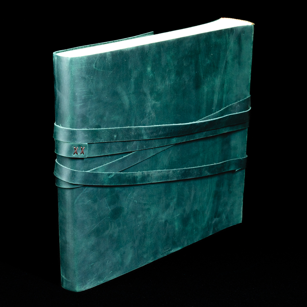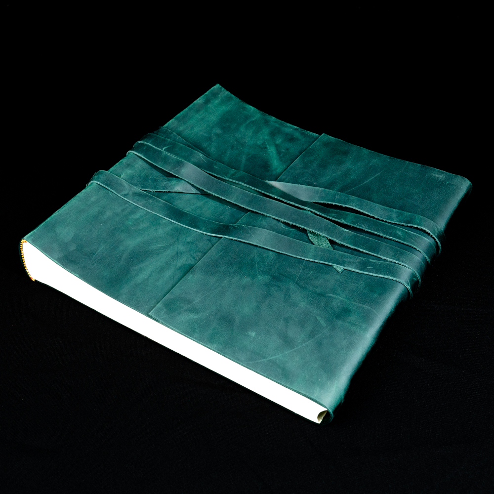 Премиальный традиционный фотоальбом ручной работы с обложкой из натуральной кожи в зеленом цвете. Фотоальбом формата 30см на 30см. Внутри фотоальбома - классический блок. Картонные листы проложенные пергаментом (калькой), которые не дают фотографиям соприкасаться друг с другом и слипаться. Фотография размещаются либо на уголки либо на двухсторонний скотч. Сделано в Италии.