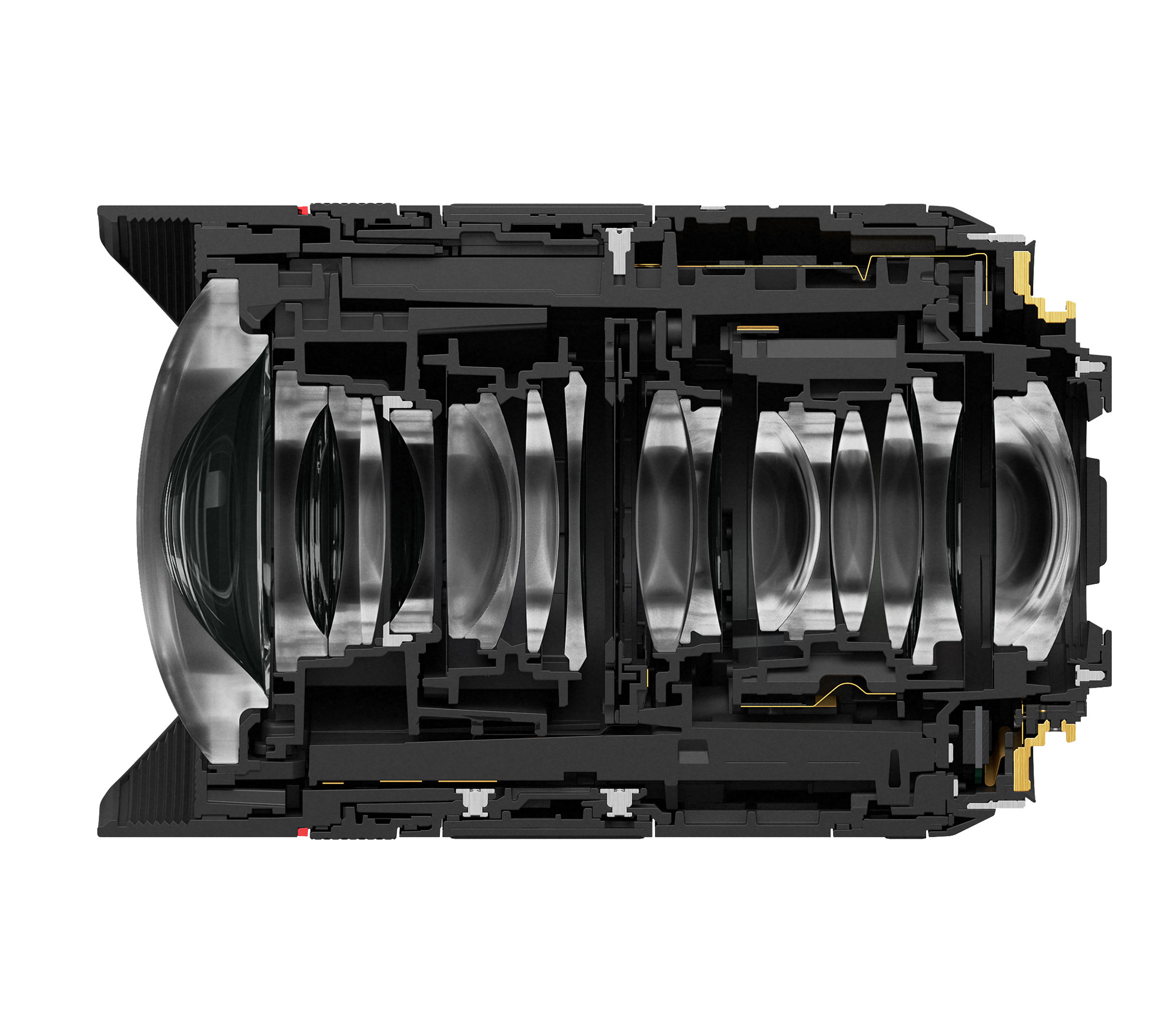 Специальные просветляющие покрытия SSC (Subwavelength Structure Coating) и ASC (Air Sphere Coating) подавляют ореолы и блики, которые очень легко поймать при таком широком фокусном расстоянии.