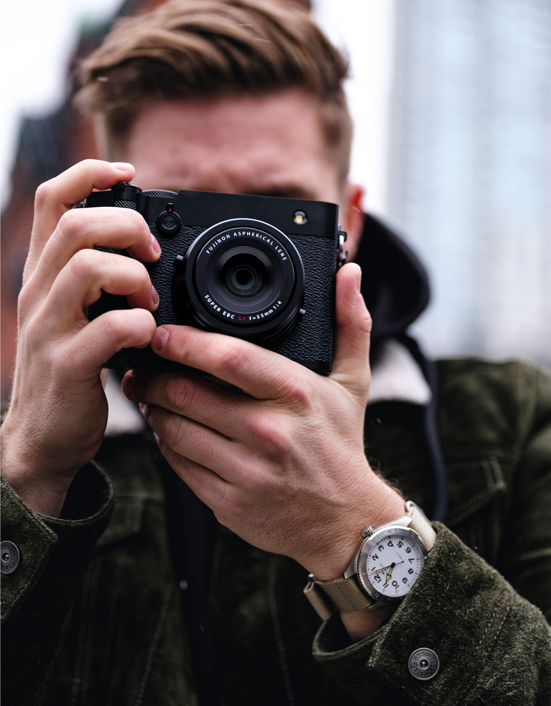 Fujifilm GFX100RF и правда во многом напоминает X100: ретродизайн, отсылающий к камерам 60-х, 70-х годов прошлого века, псевдо-дальномерная форма корпуса, обилие различных дисков, вызывающих приятные тактильные ощущения и дающих возможность прямого управления ключевыми настройками. Камера очень компактна для своего формата: поскольку объектив нельзя снять, это позволило разместить его частично внутри корпуса, практически вплотную к матрице, а также оптимизировать форму микролинз под его особенности светопропускания. Вместо фокального шторкового затвора, который применяется во всех остальных камерах Fujifilm GFX, здесь применяется лепестковый – он гораздо тише, не создает вибраций при срабатывании и может синхронизироваться с любыми вспышками при выдержках до 1/4000 с.