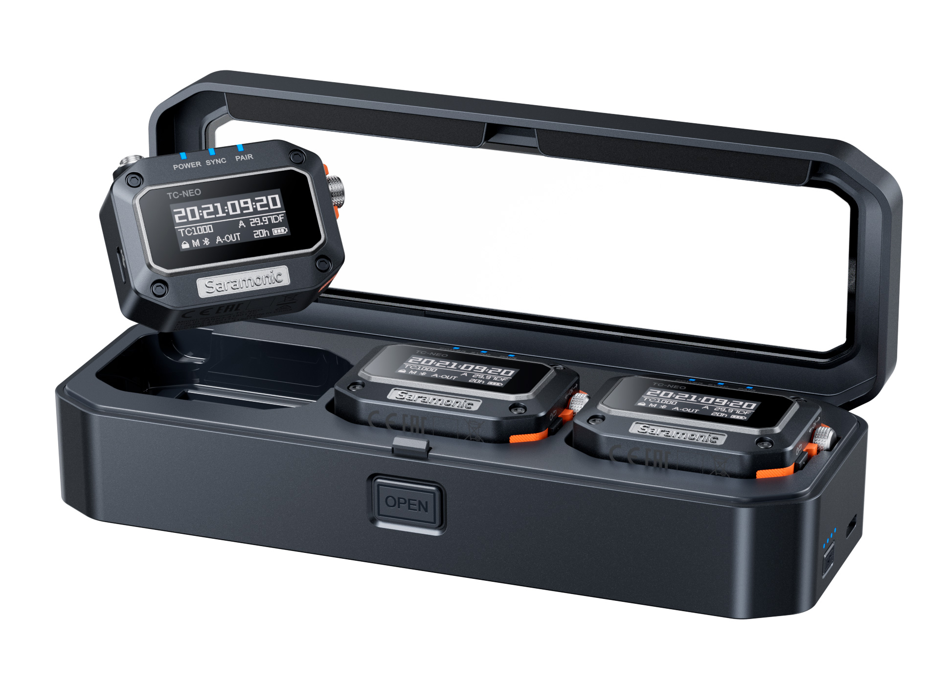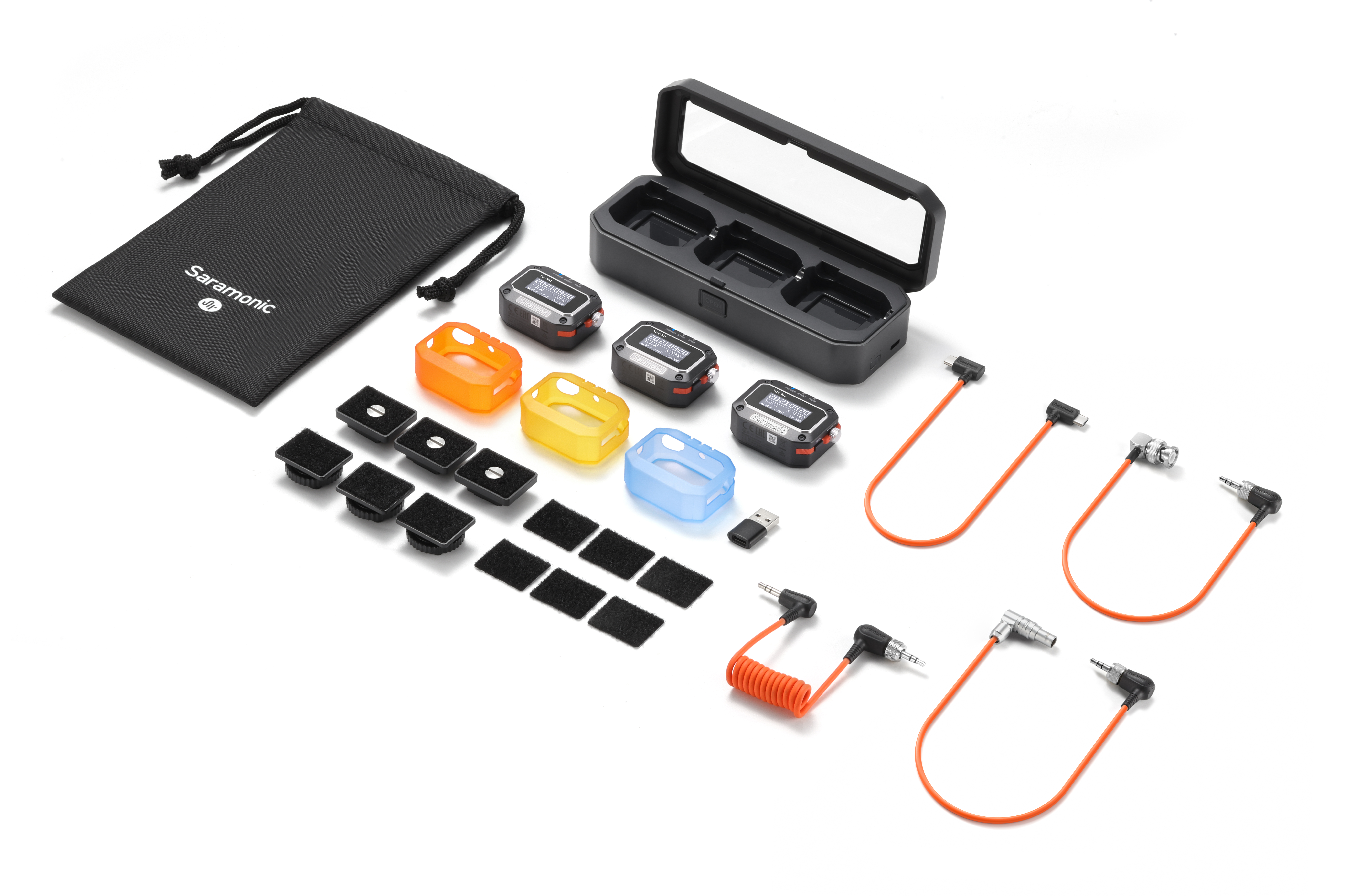 Генератор тайм-кода Saramonic TC-NEO: точная работа, цветные чехлы и зарядный кейс для синхронизации