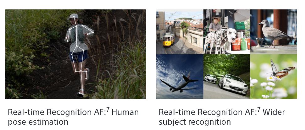 Что касается автофокуса, то надо сказать, что у Sony он был хорошим всегда – как a7 III задала планку почти 10 лет назад, так с тех пор и не было никаких существенных нареканий. Конечно, работа над усовершенствованием велась и ведется постоянно: у a7 V 759 фазовых точек, покрытие около 94% кадра, автоматическое распознавание (Real-time Recognition) 6 типов объектов: люди / животные / птицы (птицы тоже животные, но вынесены отдельно) / насекомые (тоже животные, кстати) / машины + поезда / самолеты. Sony обещает, что эффективность распознавания людей и животных выросла на 30% (по сравнению с a7 IV), а птиц – на целых 50%. От всех любителей макро можно поставить Sony «лайк» за распознавание насекомых – Canon и Nikon так пока не умеют.